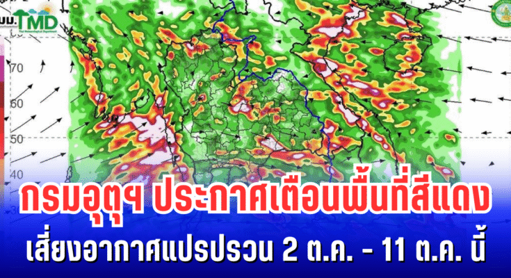 กรมอุตุฯ ประกาศเตือน!!พื้นที่สีแดง เสี่ยงอากาศแปรปรวน 2 ต.ค. – 11 ต.ค. นี้