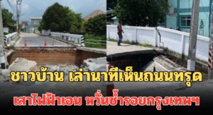 น่ากลัวมาก!!! ชาวบ้าน เล่านาทีเห็นถนนทรุดชลบุรี เสาไฟฟ้าเอน หวั่นซ้ำรอยกรุงเทพฯ