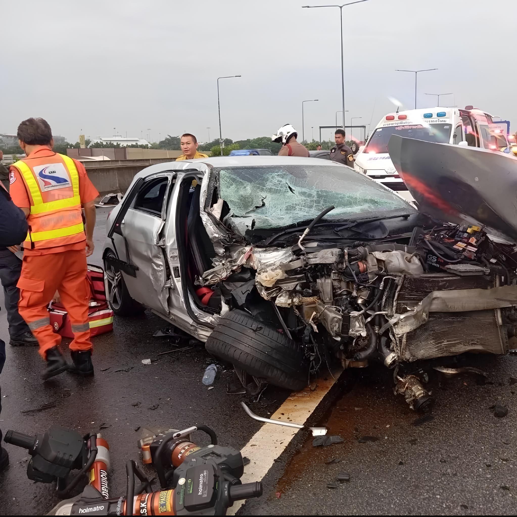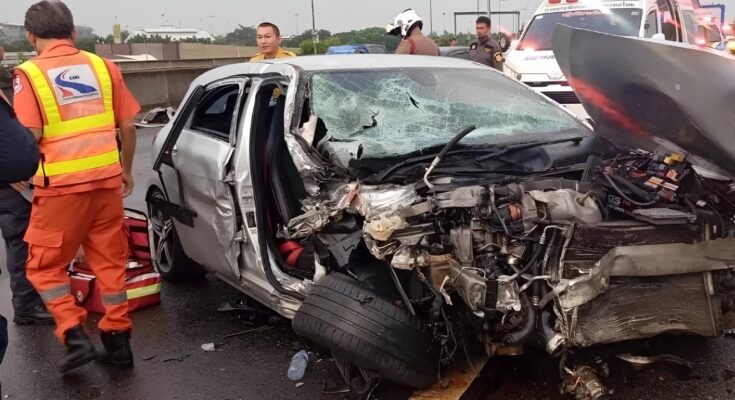 เหตุการณ์เกิดขึ้นบริเวณช่วงกิโลเมตรที่ 11 ฝั่งขาเข้า โดย รถจักรยานยนต์ของเจ้าตัว พุ่งชนท้ายรถยนต์ที่อยู่ด้านหน้า จนเกิดความเสียหายทั้งสองฝ่าย