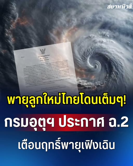 พายุลูกใหม่ไทยโดนเต็มๆ! กรมอุตุฯ ประกาศฉบับที่ 2 เตือนฤทธิ์พายุเฟิงเฉิน