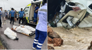 สลดเก๋งวิ่งผ่าสายฝนเสียหลักชนเสาไฟรถจมน้ำดับ 3 ราย