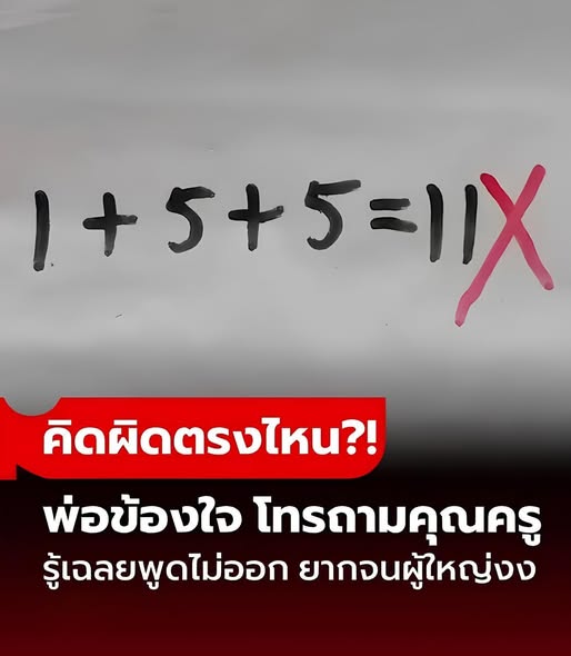 พ่อโทรหาครู ลูกคิดเลข 1+5+5=11 ทำไมตรวจว่า “ผิด” รู้เฉลยพูดไม่ออก เพราะผิดจริงๆ