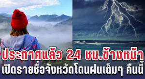 กรมอุตุฯ ประกาศแล้ว 24 ชม. ข้างหน้า ทั้งเย็น-ทั้งฝน เปิดรายชื่อจังหวัดโดนฝนเต็มๆ คืนนี้